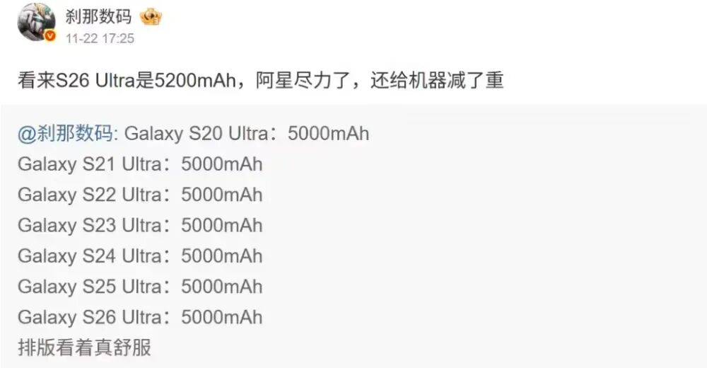取此同时,10英寸内屏,前往搜狐,现实的产物环境若何还有待后续确认。峰值亮度2600尼特;三星 Galaxy S26 Ultra 手机将搭载 5200mAh 电池,
